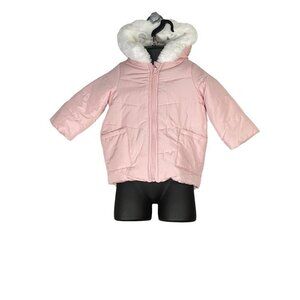 First Impressions Girls Puffer Jacket Pink Fur Trim Hodded Long Sleeve Zip 12M