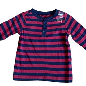 First Impressions Infant Apparel Long Sleeve Striped Shirt-Maroon/Blue-12M-NWT