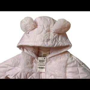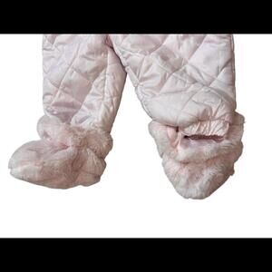 First Impressions Quilted Faux Fur Detachable Footed Hood Snowsuit Baby Pink 12M