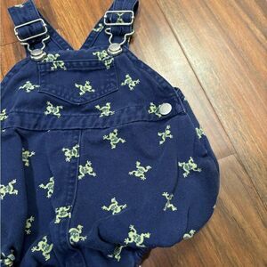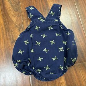 First Impressions navy frog overall romper/onesie. Adjustable straps. Sleeveless. 1 pocket. From 2002. 100% cotton. Size 0-3 months. Great condition.