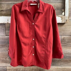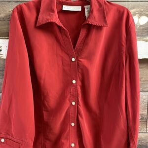 First Issue Liz Claiborne Ladies Long Sleeve Button Up Blouse, Size XL, Rust