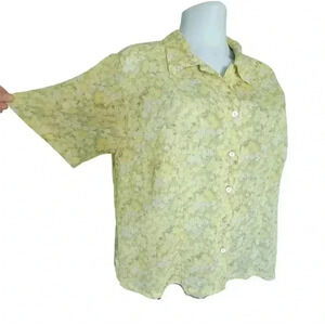 First Issue Liz Claiborne Yellow Spring Print Blouse Top Size 14W Short Sleeve