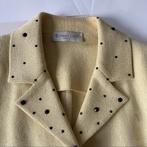 First Lady Knit Jacket Soft Pale Yellow with Black Buttons Wool Blend M