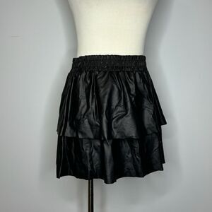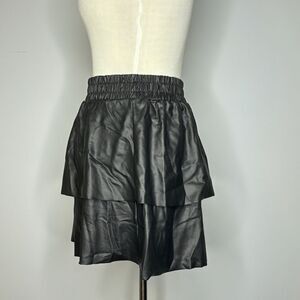First Love- Black Pleather Skirt with 2 Ruffle Layers