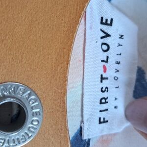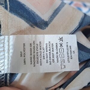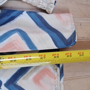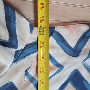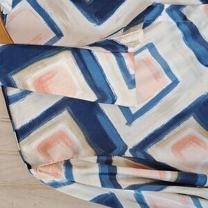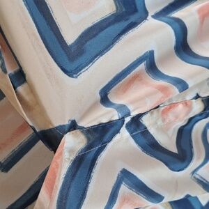 Color/Pattern: Abstract geometric print (navy, peach, ivory, beige)