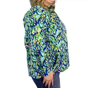 First Love By Lovelyn Abstract Print Mandarin Collar Button Down Top Sz S Blouse