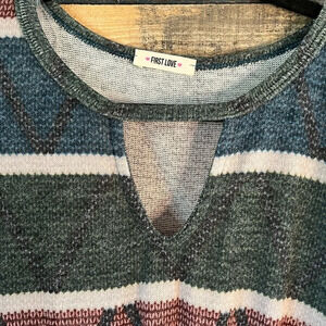 First Love Maroon And Teal Aztec Print Long Sleeve Top Size Small