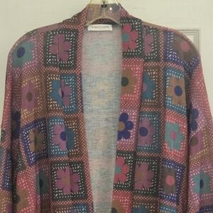 Lightweight, muti-colored, open front floral cardigan. Pretty multi-colored design. New, never worn. Large fits women sizes 10-12. Fits true to size.