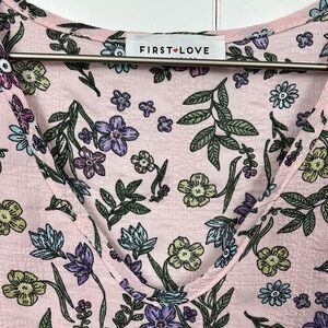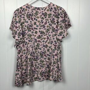 First Love Womens Top S Lilac Blue Floral Print Flutter Sleeves Pullover Pretty