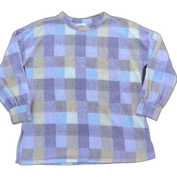 First Love by Lovelyn Lilac Gold Long Sleeve Soft Checkered Top Size Large