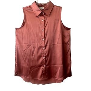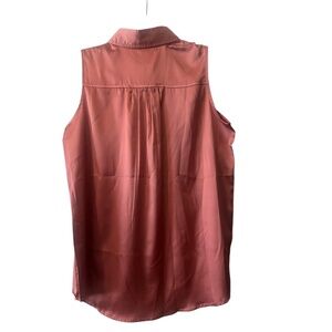 Gorgeous button-down sleeveless top with collar and beautiful detail on the back. 97% polyester, 3% elastane. P2P is 19", length 29".