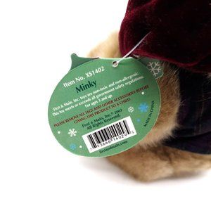First & Main Minky Holiday Teddy Bear Chirismas Plaid Vest Santa Hat Collectable