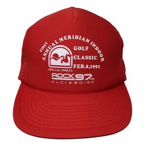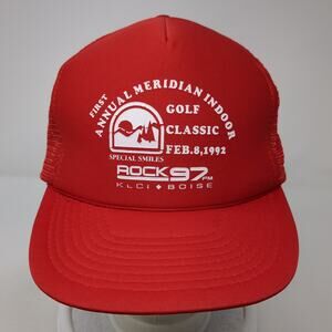 First Meridian Indoor Golf Classic 1992 Snapback Rope Trucker Hat Red OS Vintage