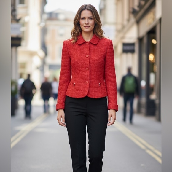 First Option Red Tweed Button Blazer Women’s Medium – Classic Style