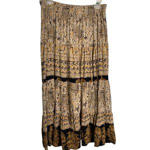 First Option Vintage Beige and Brown Elastic Waist Boho Western Skirt Size L