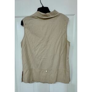 This First Option Tan linen/rayon blend shirt is sleeveless, XL, length 25”, chest approx 22”. Thank you for checking out my listing.