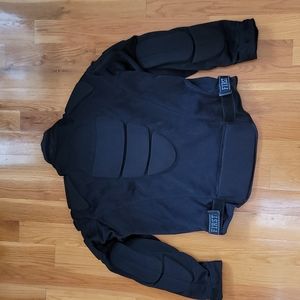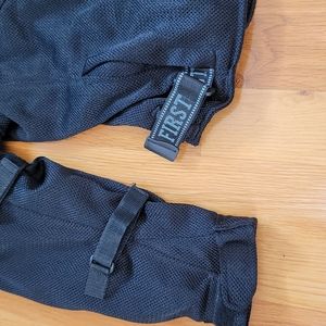 First Racing black mesh motorcycle jacket. Has padding on elbows, upper chest and shoulders along with large padding on the back for the most safety! Adjustable Velcro along the arms and sides. Excellent Used Condition. Measurements are approximately (laying flat): Chest: 26"
