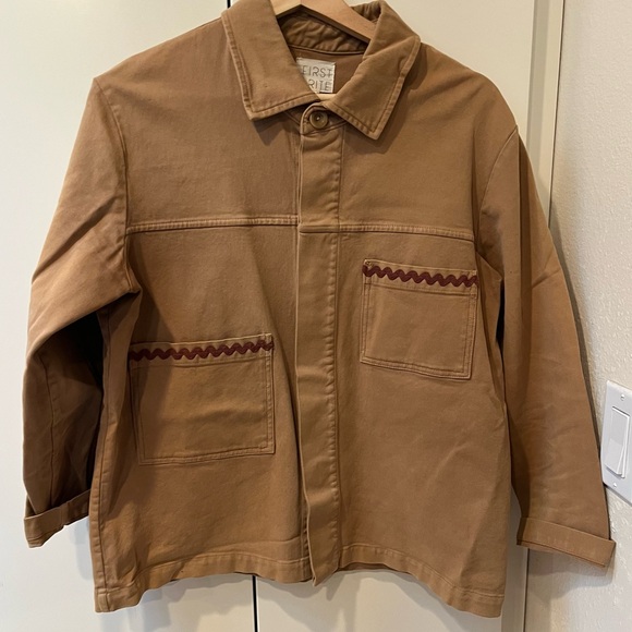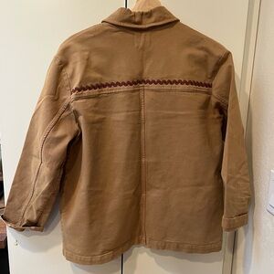First Rite stretch twill work jacket refashiononed w/wavy trim. Has a real western vibe.