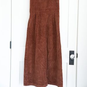 This is such a special piece. Wide Wale burnt red orange corduroy jumpsuit with pockets and a size zipper.