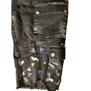 First Row 38 Black Splatter Paint Distressed Cargo Grunge Streetwear Shorts