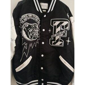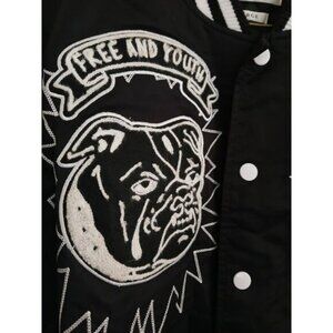 First Row Bulldog Varsity Jacket Men's L Graphic Patch Retro Streetwear Bomber