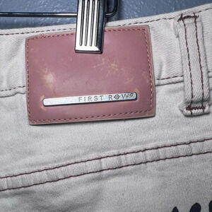 First Row Men Denim Shorts Sz 38 Hand Painted Distressed Boro Stitch 10” Inseam. Waist laying flat 18.5”. Rise 24”.