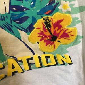 First Row Mens Size S Mandatory Vacation White Graphic T-Shirt Applique Tropical