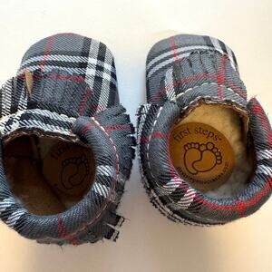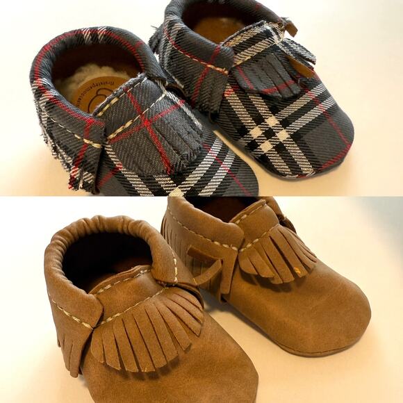 First Steps Baby Fringe Moccasin Shoe Set In Plaid Brown Size 6-12 Months