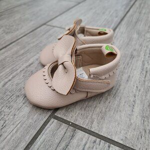 Style: Crib shoes with bow strap closure
