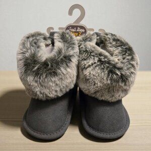 First Steps by Stepping Stones Baby Booties Size 2 Gray Faux Fur Lined Crib Shoe