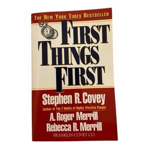 Discover a transformative approach to time management with "First Things First" by Stephen R. Covey, A. Roger Merrill, and Rebecca R. Merrill. This gem is a must-read for adults seeking to align their values with their daily actions, enhancing productivity and personal fulfillment. Perfect for business professionals and self-help enthusiasts, this book is ideal for quiet evenings or weekend retreats when you want to focus on personal growth. This pre-owned copy is in excellent condition, ready to inspire its next reader.