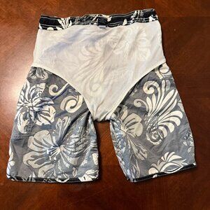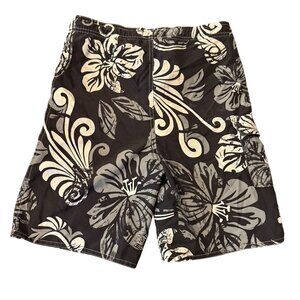 First Wave Boys Swim Trunks Black White Floral Board Shorts Size 8