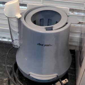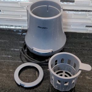 Good used condition. Has some scale inside but that part doesn't touch the food, just the outside of the bottle. Includes instructions and original box.