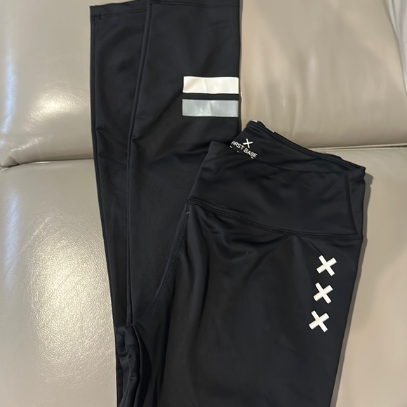 First base active black leggings with some designs ordered off soulcycle wore once great condition awesome material, size would be like a medium