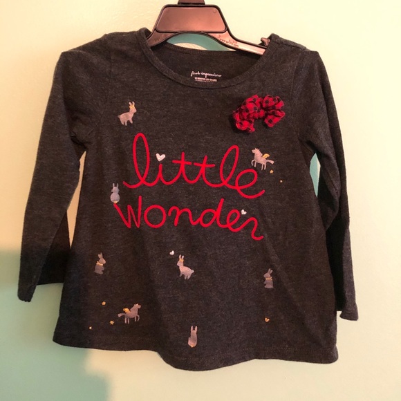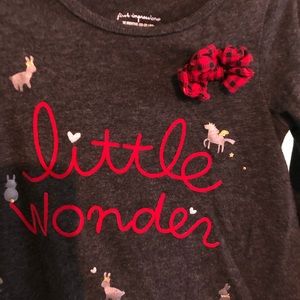Cute with bunnies and horses on it. Gray/Red Bow red/black. Says Little Wonder.