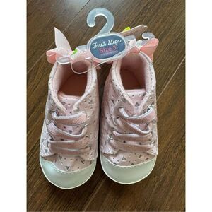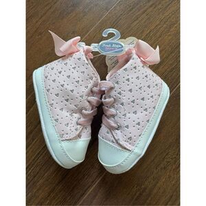 First Steps size 3 6-9 month baby girl sparkle pink lace shoes