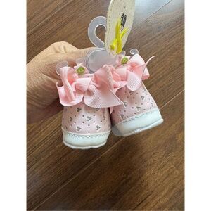 First Steps size 3 6-9 month baby girl sparkle pink lace shoes