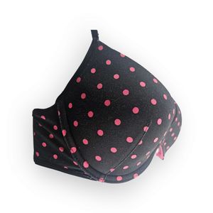 Firtitude Bra 36C Black Pink Polka Dot Push-Up Padded Underwire Back Closure