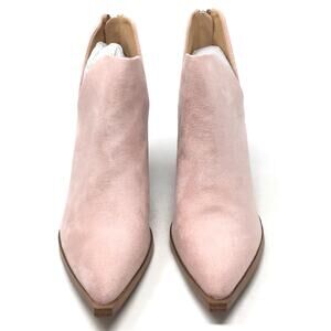 Fisace Women's Size 7.5 Pink Pointed Toe V Cut Stacked Mid Heel Ankle Bootie