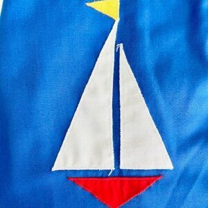 Fischel by Johnston Vintage Retro Sailboat Seaguls Blue Yellow Dress Size 3T