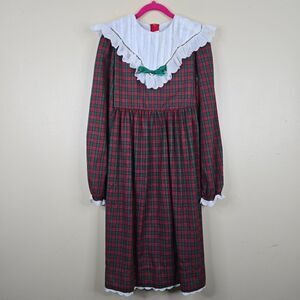 Fischel vinatge 70s 80s tartan plaid with ruffled collar size 14