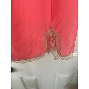 This is a lovely 1964-1973 salmon colored nightgown with beige lace trim, small side. Union Made in USA
