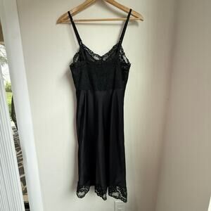 Fischer Vintage Slip Dress Black Nylon Silk Blend Lace Trim Lingerie Size 32