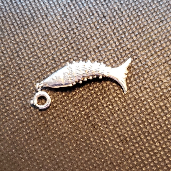 Vintage silver fish charm. The fish has a reticulated back so it bends. Unique & charming little piece.