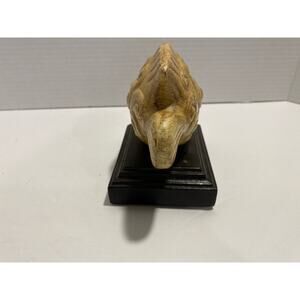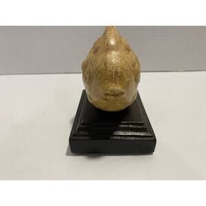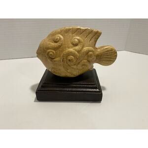 Fish Figurine on Wood Block Ceramic 8" Beach House Neutral Coastal Decor