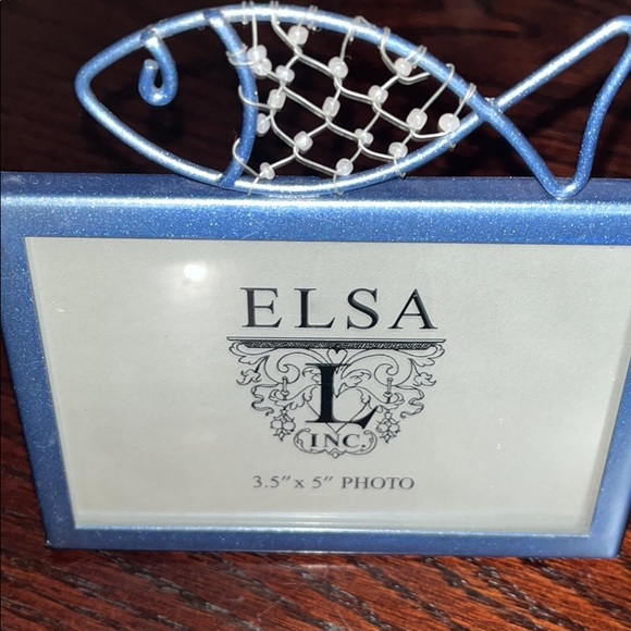 Fish Frame Blue with White Pearls by Elsa 3.5” x 5”