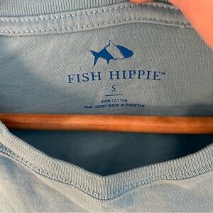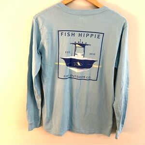 Fish Hippie Long Sleeve Tee. Size Small. Light blue. Great condition. See measurements.