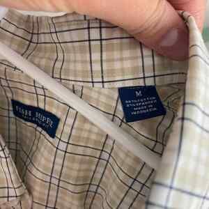 Fish Hippie Tailored Fit Tan/White Plaid Print Long Sleeve Button Down Shirt-M