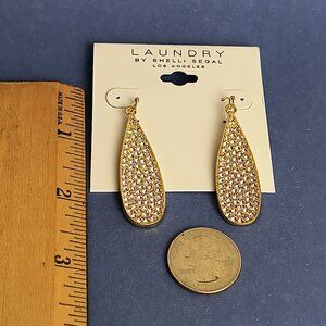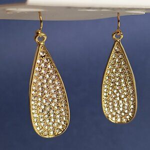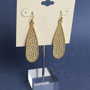 Fish Hook Elegant Teardrop Earring Gold Tone Clear Rhinestone Casual Statement