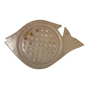 This Vintage Fish Shaped Marble Game Solitaire Plate is a multifunctional piece that could be used as a serving platter or a game board. Its beige stone finish emanates a classic, vintage vibe perfect for unisex use.